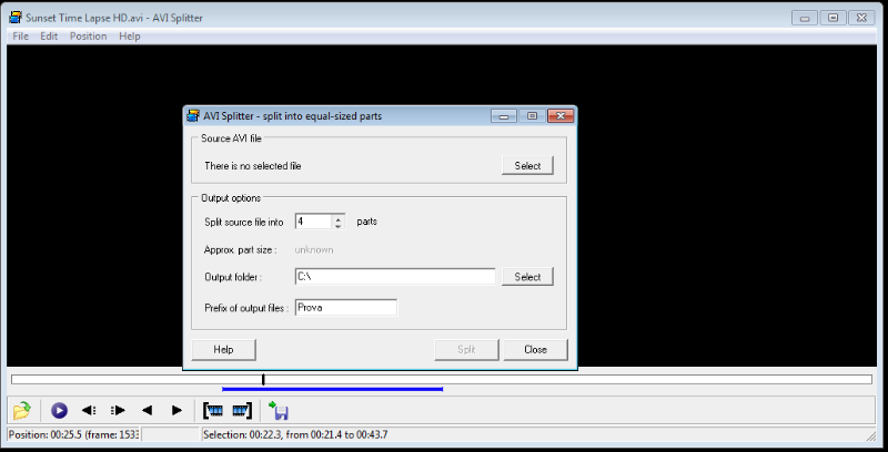 Sebbene la sua interfaccia possa sembrare troppo semplice o addirittura spartana, AVI Splitter contiene tutte le funzionalità essenziali per poter ritagliare e dividere in frammenti i nostri video AVI.