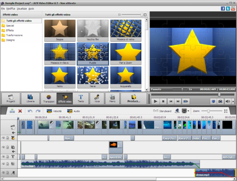 AVS Video Editor è un potente programma con cui poter modificare i video. Tramite questo applicativo potremo tranquillamente importare i nostri filmati (anche direttamente dalla videocamera) e successivamente personalizzarli aggiungendo filtri, effetti, transizioni e andando anche ad effettuare alcune operazioni di editing come l'eliminazione degli spezzono inutili e il bilanciamento cromatico delle immagini.
