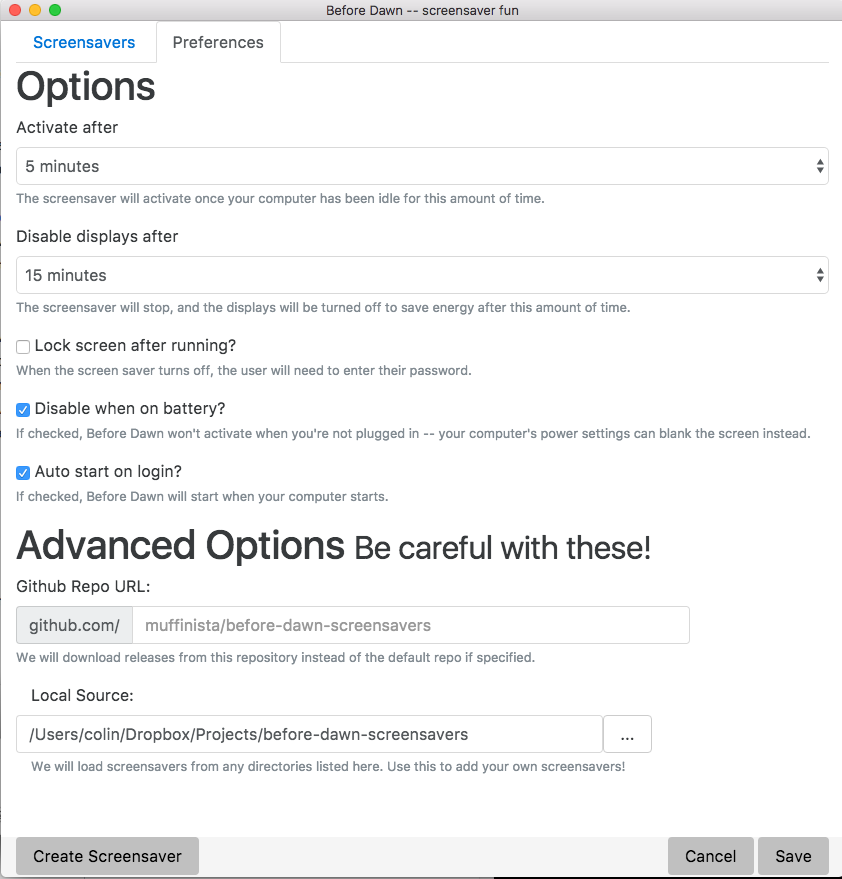 Before Dawn è un progetto open source ed offre un'interfaccia utente molto chiara sebbene localizzata nella sola lingua inglese. Before Dawn è disponibile al download gratuito e non sono previsti costi di licenza. Gli screensaver a disposizione di default sono: