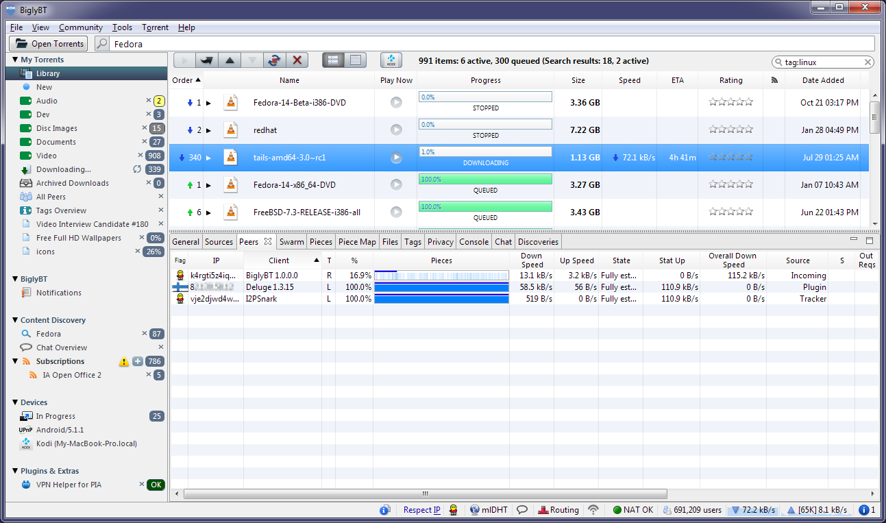 BiglyBT è un potente client per il file sharing basato sul progetto Vuze - Azureus. Questo client torrent è la prima versione del progetto ed è proprio per questo molto simile a Vuze, ma con il tempo è destinato, invece, a differenziarsi ulteriormente. Questo client si mette in luce anche per l'assenza della pubblicità, invece, ben presente all'interno di Vuze. Attraverso questo client per il file sharing le persone potranno scaricare dalla rete tutto quello che vorranno, configurando anche velocità e sicurezza.