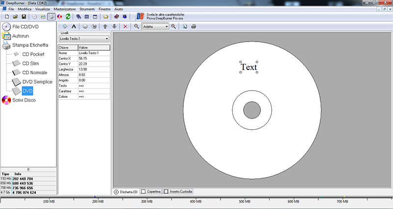 L'altra funzionalità consente di creare delle cover per i propri supporti: Deep Burner consente di comporre la propria copertina inserendo elementi testuali e grafici personalizzati.