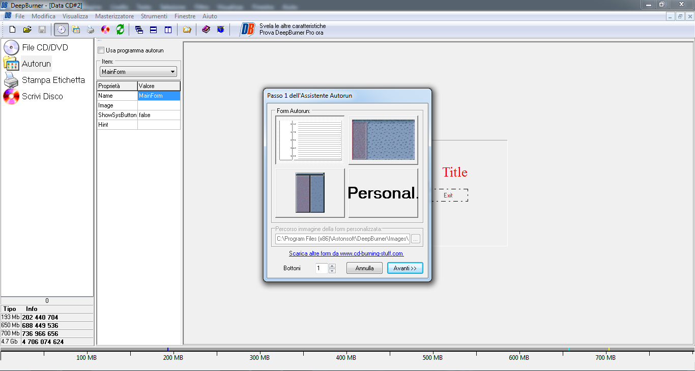 La prima è quella di creare un menù di autorun per il vostro CD/DVD: Deep Burner vi consente di dotare il vostro disco di un menù di avvio in cui poter selezionare diversi contenuti.
