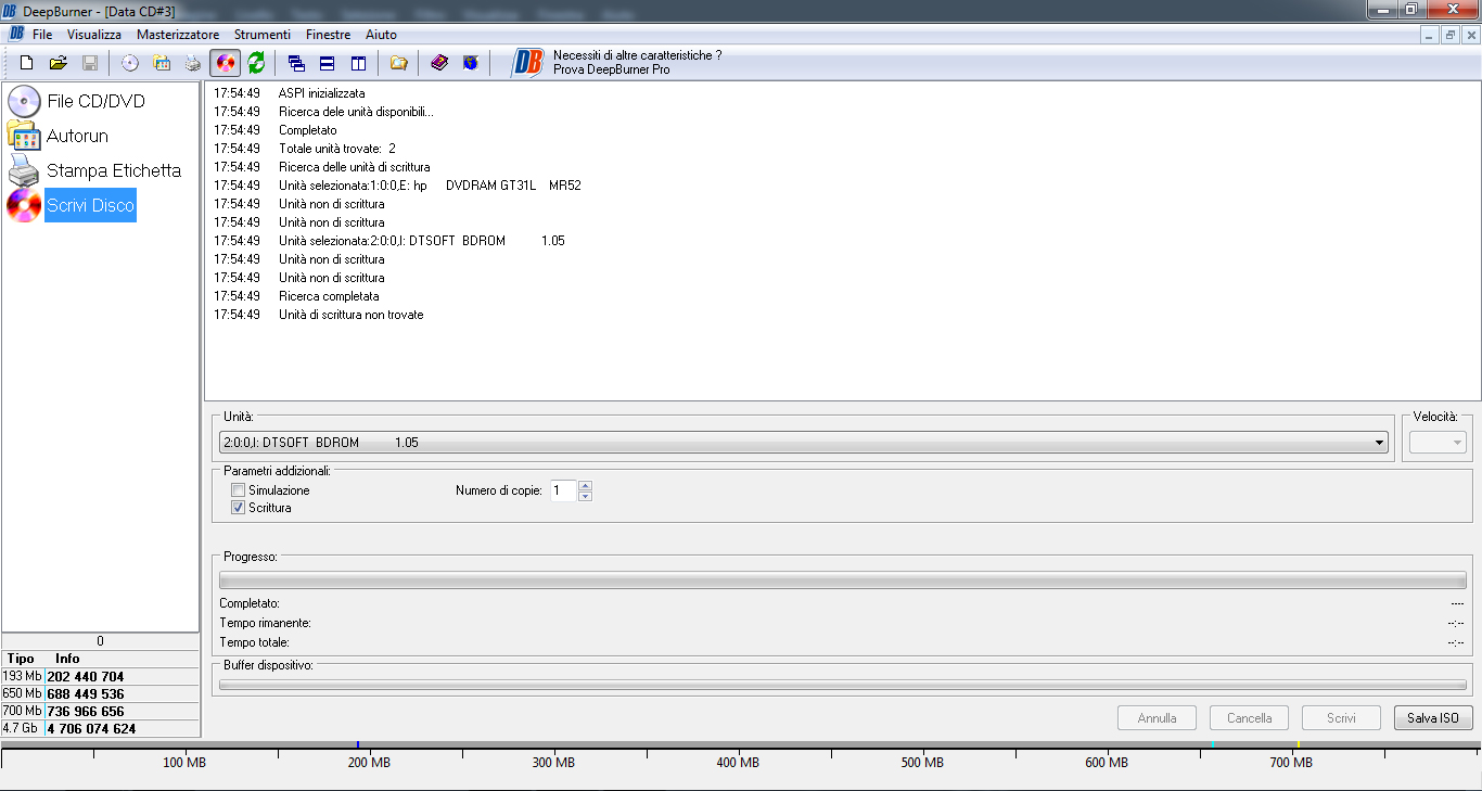 Tramite un nuovo pannello sarà dunque possibile scegliere il masterizzatore, settare la velocità, il numero di copie, se salvare il disco creato in un file ISO e godere di informazioni dettagliate sul procedimento in corso grazie ad una schermata di log.