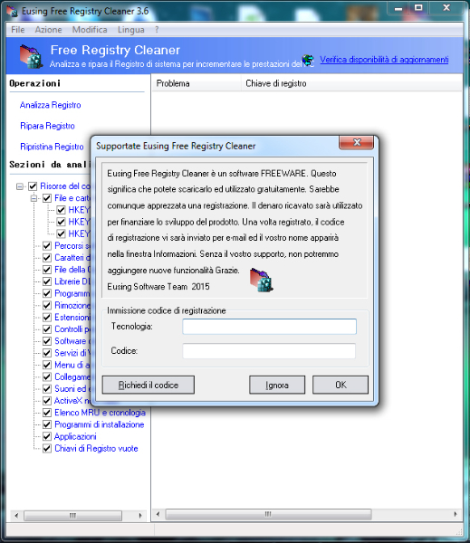Il registro di Windows è infatti un componente delicato e la rimozione di alcune chiavi potrebbero rendere il sistema instabile, dunque utilizzato questo strumento con attenzione e non dimenticate di fare un backup.