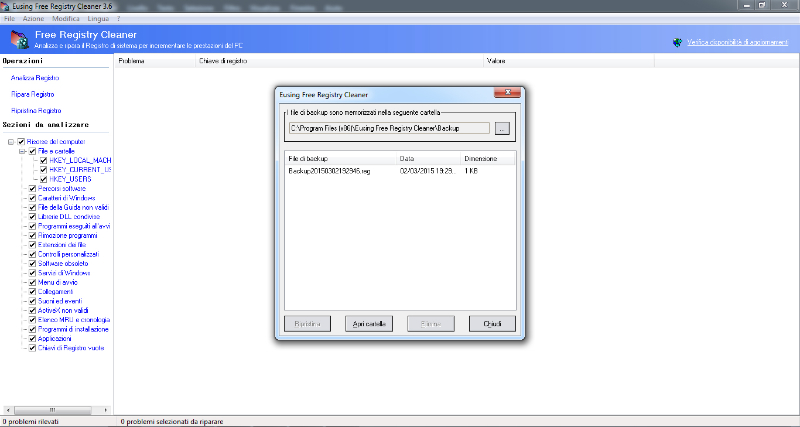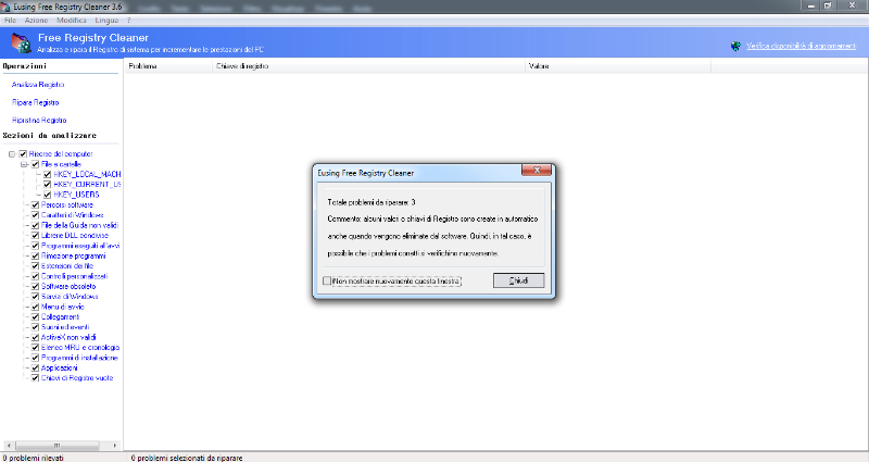 Cliccando su Ripara Registro, il programma si occuperà di eseguire la pulizia delle chiavi in modo rapido, funzionale e autonomo.