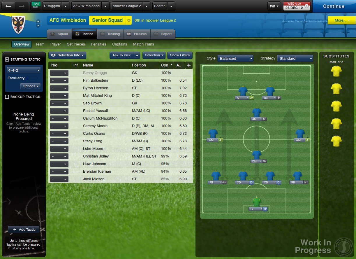 Al centro del gameplay c'è la modalità Carriera, in cui si viene chiamati a sedere sulla panchina per scegliere chi schierare nell'undici titolare e chi tenere a riposo o addirittura mandare in tribuna, decidendo gli schemi in vista di ogni sfida analizzando nel dettaglio le peculiarità dell'avversario da affrontare e lo stato di forma di ogni singolo elemento della rosa. Le partite sono visualizzate sullo schermo con unmotore grafico 3D, non con lo stesso dettaglio grafico di simulazioni calcistiche come FIFA 13 o Pro Evolution Soccer 2013, ma comunque in grado di rendere il giocatore partecipe di quanto accade sul terreno.