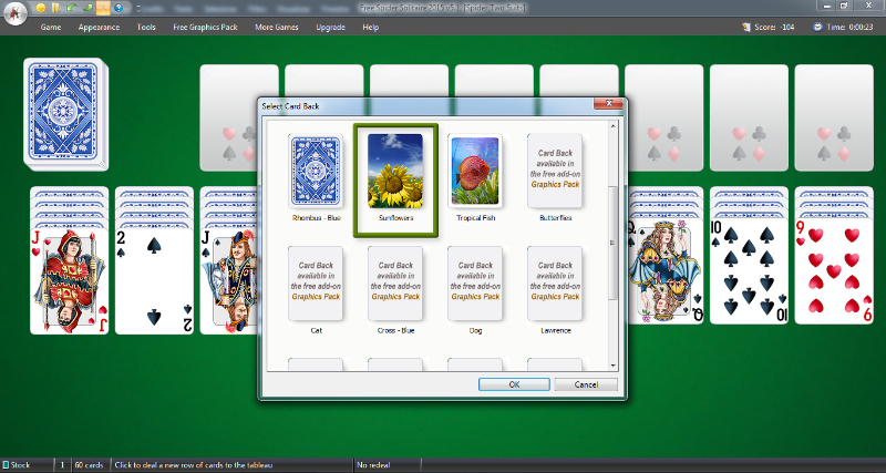 Accanto è presente il menù Appearance che consente di personalizzare vari aspetti del gioco: oltre alla possibilità di scegliere fra 3 diversi colori per i menù potrete cambiare lo sfondo del tavolo e il dorso delle carte; non tutte le grafiche sono disponibili in quanto, per alcune, è necessario un download addizionale.