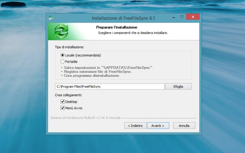 FreeFileSync può essere installato anche in versione "portatile", cioè potremo collocarlo su una chiavetta o memoria esterna, per poterlo avviare su ogni computer in ogni momento e per ogni evenienza. La scelta di quale versione usare va effettuata durante la veloce installazione. Da sottolineare anche un ulteriore piccolo aspetto della fase dei setup. L'installer di default andrà ad installare anche un componente aggiuntivo che però nulla ha che fare con il programma in se. Trattasi di un programma "sponsor". Scegliendo l'installazione personalizzata è possibile specificare di non voler installare questo add-on, andando così a risparmiare spazio prezioso sul computer.