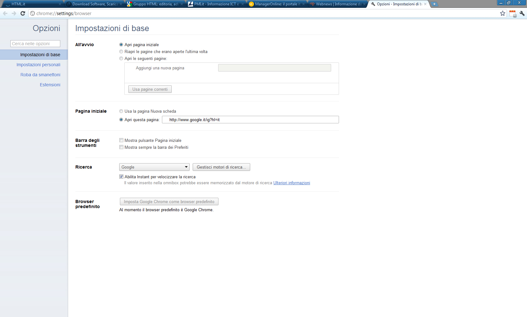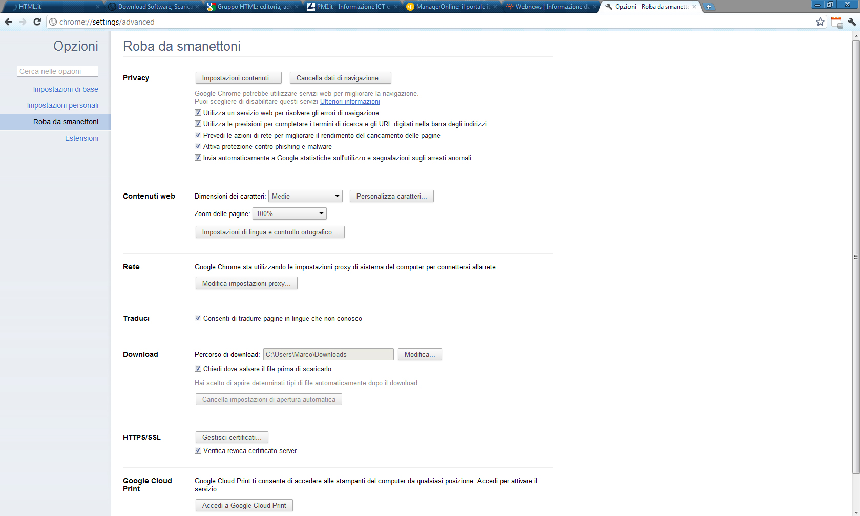 Con il supporto multiutente si riesce a passare da un profilo ad un altro mantenendo i dati principali. Per aggiungere un nuovo utente occorre scegliere la voce "Opzioni" dal menu principale, entrare nella sezione "Impostazioni personali" e cliccare la voce "Aggiungi nuovo utente". In tema di configurazione il programma suddivide le opzioni in impostazioni di base, personali e avanzate, queste ultime simpaticamente definite come "Roba da smanettoni" e comprendente l'opzione Cloud Print per accedere alle proprie stampante da qualsiasi posizione. Vi è inoltre un'area specifica rivolta alla gestione delle estensioni nella quale è attivabile una modalità sviluppatore.