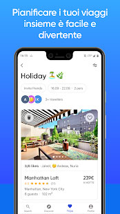 Holidu - Case vacanze è disponibile gratuitamente per iOS e Android e risulta particolarmente immediata da utilizzare. Ampia la varietà di alloggi fra i quali scegliere: appartamenti, attici, loft, bungalow, ville, baite, agriturismo e bed & breakfast. Numerose anche le destinazioni nazionali ed internazionali. La ricerca avviene in modo immediato e si possono confrontare i prezzi delle diverse proposte, potendo anche fissare un determinato budget. Si possono inoltre inserire parametri quali piscina, TV, Wi-Fi, animali ammessi ed altro ancora. L'opzione di salvataggio consente di salvare le proposte più allettanti e condividerle con altre persone.