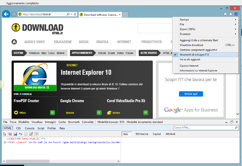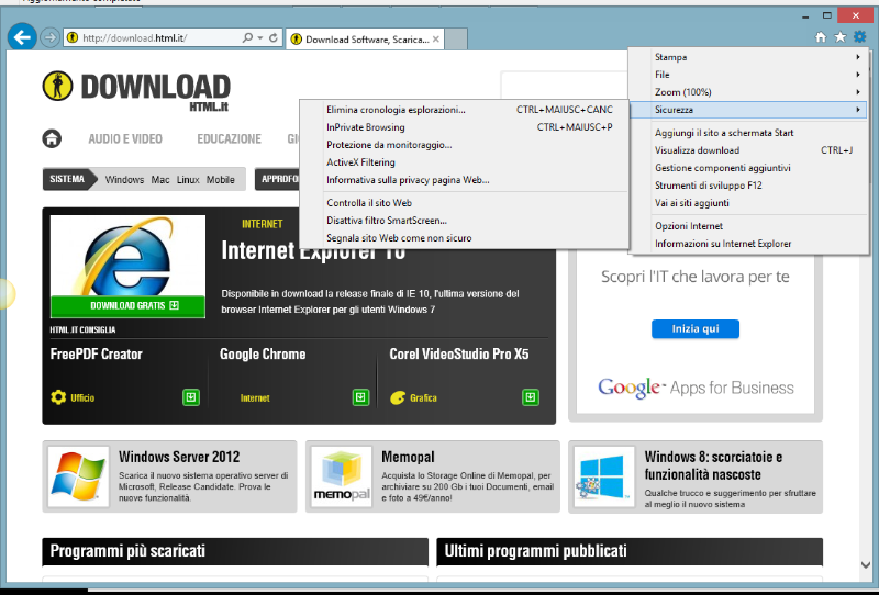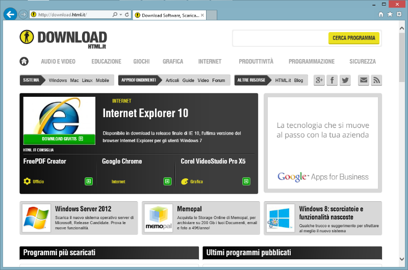 Internet Explorer 10 è la nuova versione del browser di Microsoft rilasciata per gli utenti Windows 7. IE 10 è già presente di default per il nuovo sistema operativo Windows 8 dove tutto ruota intorno alla nuova interfaccia Modern UI con il supporto dei moderni standard web come HTML5, ottimizzata non solo per dispositivi touch ma anche per mouse e tastiera.