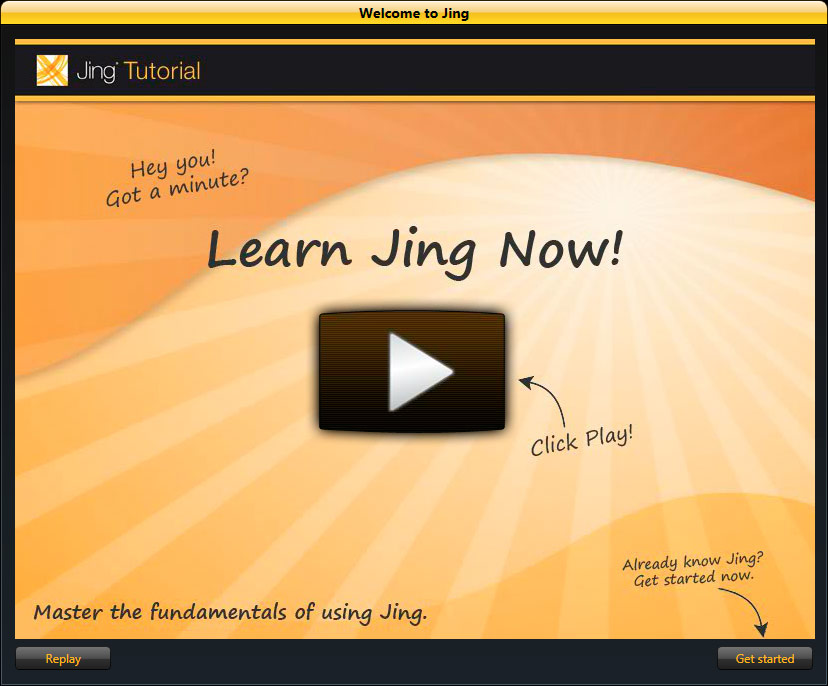 Al primo avvio dopo l'installazione viene mostrato un tutorial interattivo, che spiega brevemente tutte le operazioni consentite fornendo alcune indicazioni riguardanti le modalità di cattura. Le volte successive, quando lanciato, Jing si posiziona sul bordo superiore del desktop, con un'icona a forma di semicerchio giallo. Passando con il mouse sull'applicazione vengono aperte tre opzioni: Capture (Cattura), History (Cronologia) e More (Altro). Purtroppo, come ben comprensibile anche dagli screenshot allegati, l'unico linguaggio al momento supportato è l'inglese. I comandi a disposizione sono comunque di facile comprensione, grazie anche alle icone esplicative che li accompagnano.
