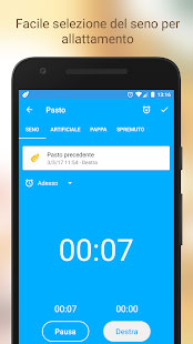 L'allattamento al seno fa anche prendere in considerazione il nutrimento con pappe solide, stabilendo tipo di cibo e relative quantità. Pratici timer aiutano a gestire nel miglior modo possibile l'alternanza fra allattamento e sonnellini. Si possono inoltre aggiungere promemoria per determinati eventi. L'app contiene annunci i quali possono essere rimossi con acquisti integrati.