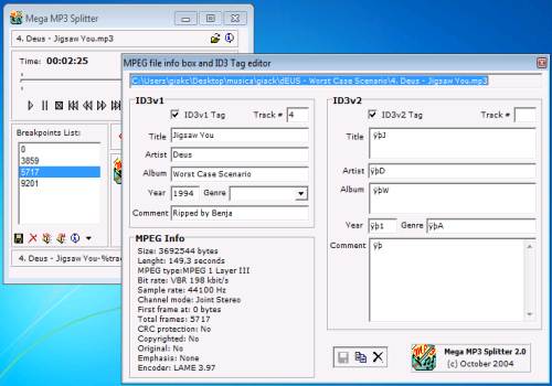 Se non si desidera effettuare immediatamente il taglio è possibile anche salvare su file di testo le informazioni sui breackpoint impostati e archiviare l'informazione per un uso successivo come BreakPoint List file. Questo file di testo conterrà tutte le informazioni necessarie all'applicazione per recuperare il file dalla cartella originaria restituendo i punti di suddivisione ed eventuali informazioni sull'etichetta del file mp3.