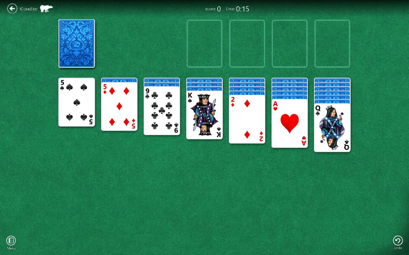 Con il nome Klondike si indentifica il Solitario, quello classico giocato con 52 carte del mazzo francese: il gioco dispone sette colonne di carte e, l’obiettivo, è posizionare nella quattro case dei semi, tutte le carte. Ogniqualvolta non potrete scambiare le carte fra le colonne, non vi resta che girarne una dal mazzo.