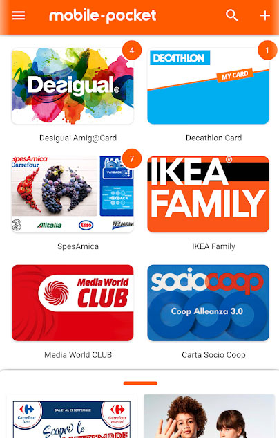 mobile-pocket carte fedeltà è una pratica app sviluppata al fine di semplificare la gestione di carte fedeltà di diversa natura. Interfaccia amichevole e semplicità di utilizzo costituiscono le caratteristiche principali di questo software. È scaricabile e utilizzabile gratuitamente in smartphone Android e iOS. La visualizzazione di codici a barre e QR può avvenire anche in assenza di connettività dati.
