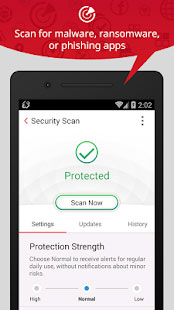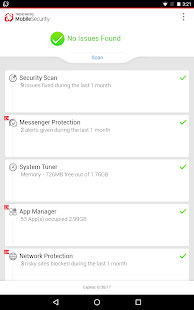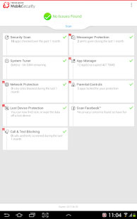 Mobile Security esegue la scansione delle app presenti nel sistema, oltre alle aree di memoria dove potrebbero insinuarsi gli agenti malevoli. La funzione di controllo Wi-Fi invia una notifica all'utente quando si connette ad una rete non protetta e potenzialmente vulnerabile. Privacy Scanner ha invece il compito di avvisare l'utente in caso di app capaci di divulgare dati personali. Se vengono effettuati tentativi non autorizzati di utilizzo del telefono possono essere effettuati degli scatti fotografici in modo segreto.