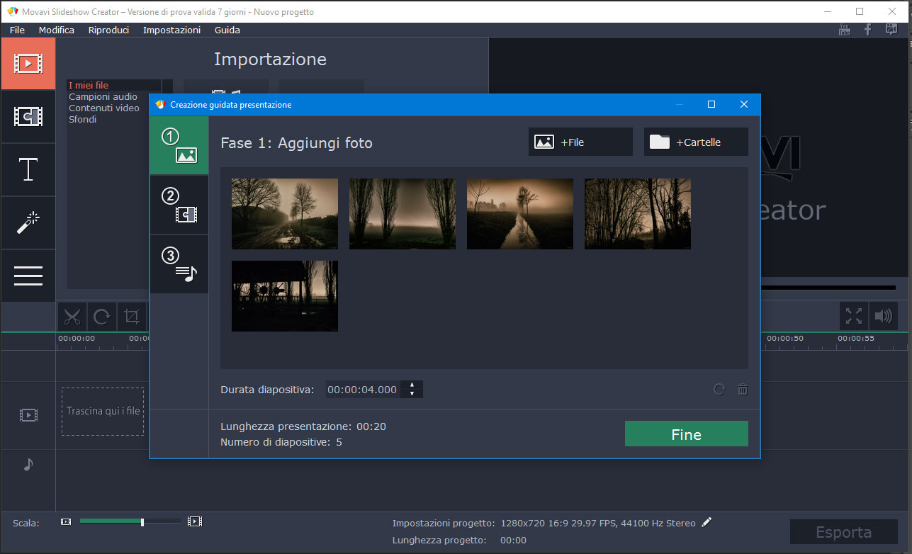 Movavi Slideshow Creator è un programma utile per creare slideshow e audiovisivi partendo da una serie di fotografie. È disponibile per computer con sistema operativo Windows e macOS, con interfaccia tradotta interamente in italiano e caratterizzata da un layout ben organizzato che rende le operazioni di editing accessibili a tutti, anche ai meno esperti.