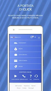 - Richiedere un prestito personale, l'apertura di un Conto Deposito, la Carta di Credito FCA Bank e l'attivazione di una polizza on-demand.