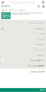 Nowbanking consente anche di seguire in tempo reale gli aggiornamenti relativi allo stato della propria richiesta di mutuo, potendo caricare eventuali documenti mancanti e necessari all'espletamento della pratica in corso. Non mancano inoltre le funzioni indispensabili per gestire conto corrente e carte di credito, con grafici in tempo reale per rappresentare entrate ed uscite relative all'ultimo mese. In termini di pagamenti si può procedere con bonifici, bollettini postali, MAV/RAV e F24 semplificato. La sezione investimenti consente infine di effettuare compravendita di azioni, obbligazioni ed altri titoli.