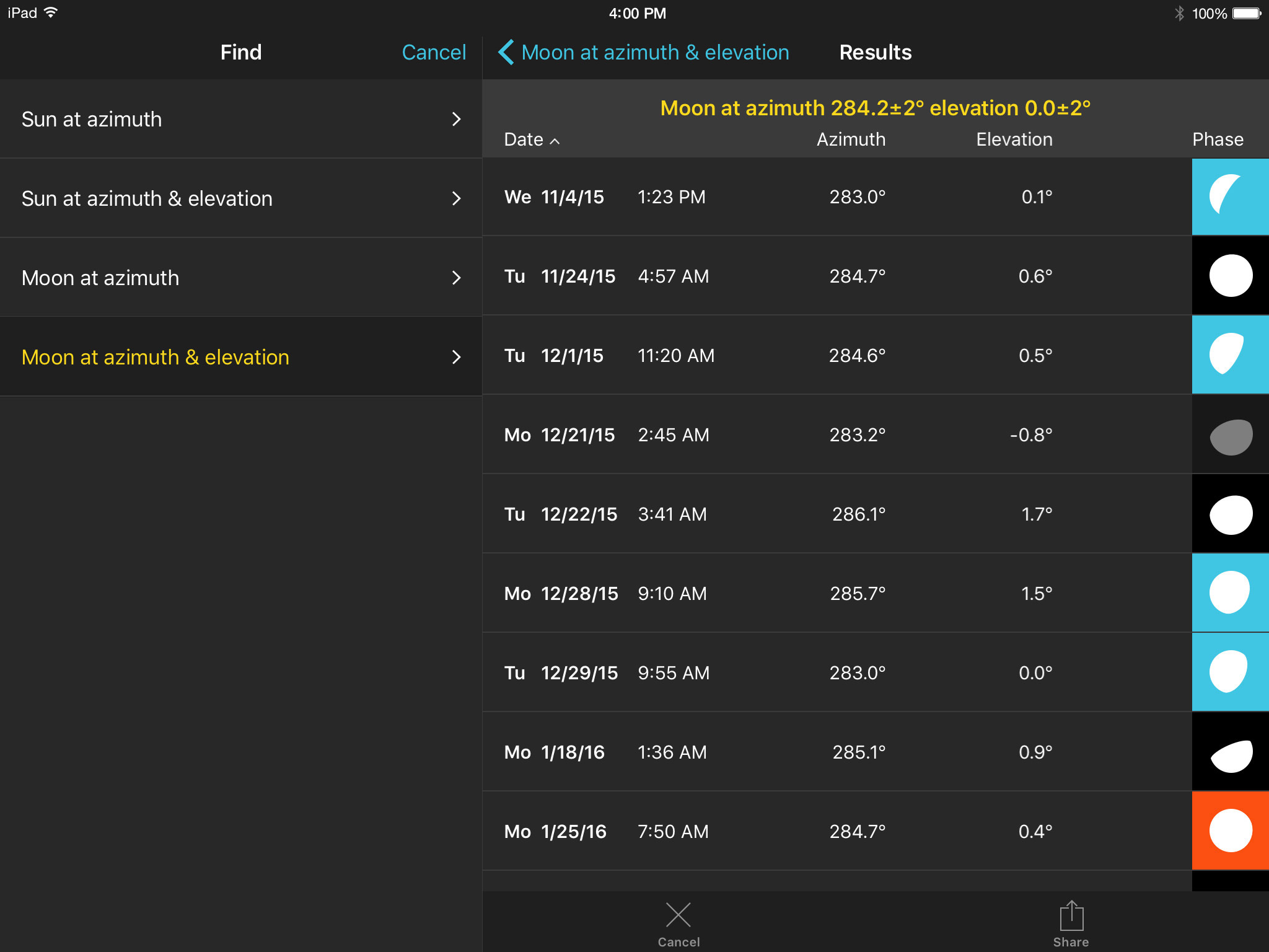 Tra le informazioni mostrate sulla location ci sono quelle relative ad alba e tramonto, calendario lunare, stella polare, equatore celeste, strumenti di calcolo per la realizzazione dei timelapse e delle lunghe esposizioni, una tabella con la distanza iperfocale e molto altro ancora. Non mancano nemmeno funzionalità di realtà aumentata per sovrapporre dati sul display (richiedono l'utilizzo della bussola).