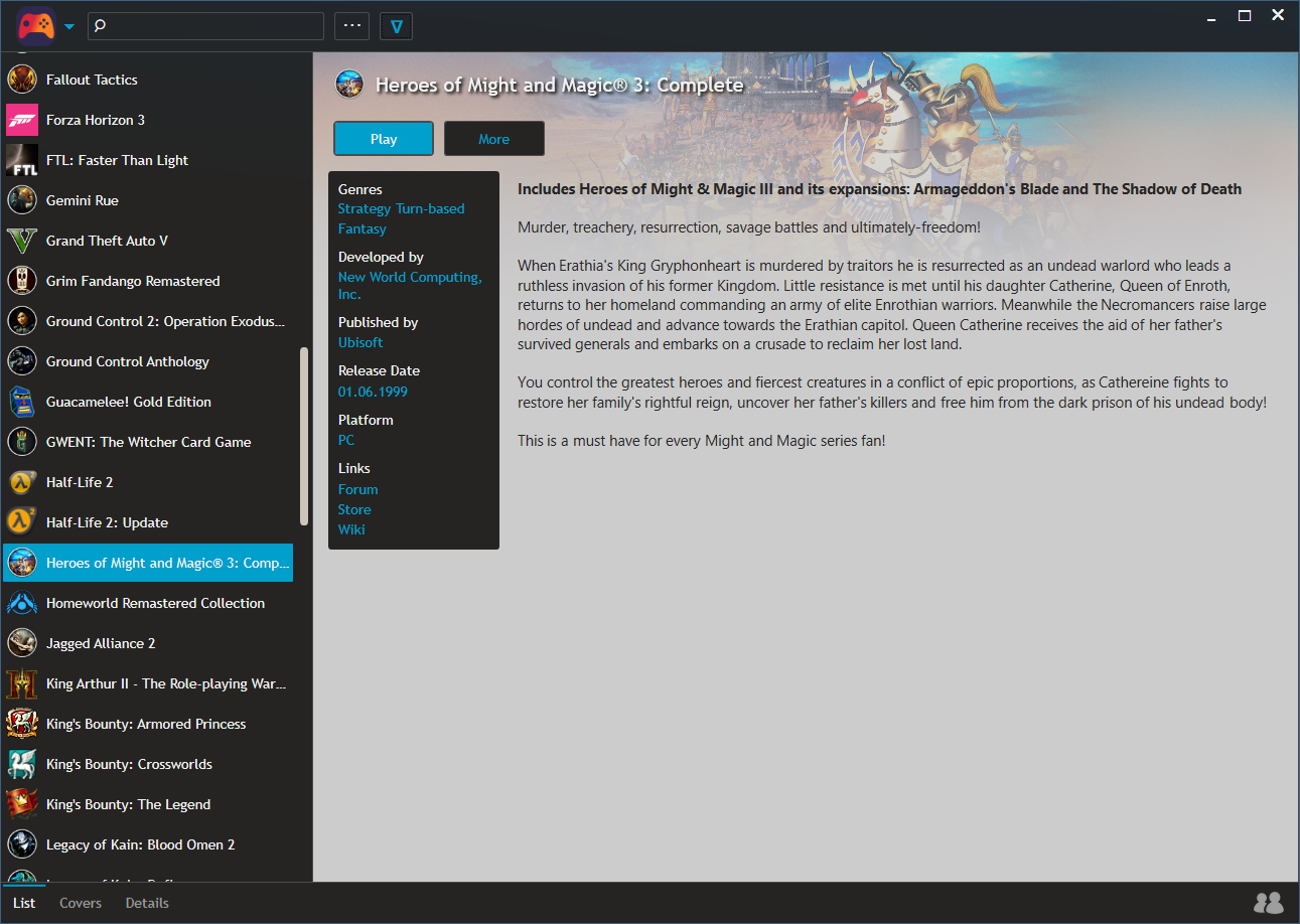 Playnite è un manager che permette di gestire e di avviare giochi importati da piattaforme come Steam, GOG, Origin e Uplay da un unico luogo. I giocatori, dunque, potranno gestire il loro archivio di giochi direttamente da un unico programma senza dover utilizzare più applicativi. Playnite offre un'interfaccia molto ben strutturata dove poter organizzare in maniera ordinata i videogiochi. Inoltre, non manca nemmeno uno strumento di emulazione per eseguire vecchi titoli del passato. Per ogni gioco è possibile accedere ad una scheda informativa e sono disponibili, anche, gli eventuali aggiornamenti.