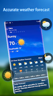 Previsioni meteo - Avvisi meteo - Widget, oltre a fornire dettagli sulle condizioni del tempo, consente di monitorare la qualità dell'aria in tempo reale. Si possono anche configurare avvisi e notifiche di diversa natura, concernenti ad esempio nebbia, neve, pioggia e temporali, grazie anche alla disponibilità di una mappa radar. Oltre alla individuazione automatica della posizione attuale è possibile inserire direttamente la località d'interesse desiderata. L'app è personalizzabile anche sul piano grafico mediante sfondi dedicati.