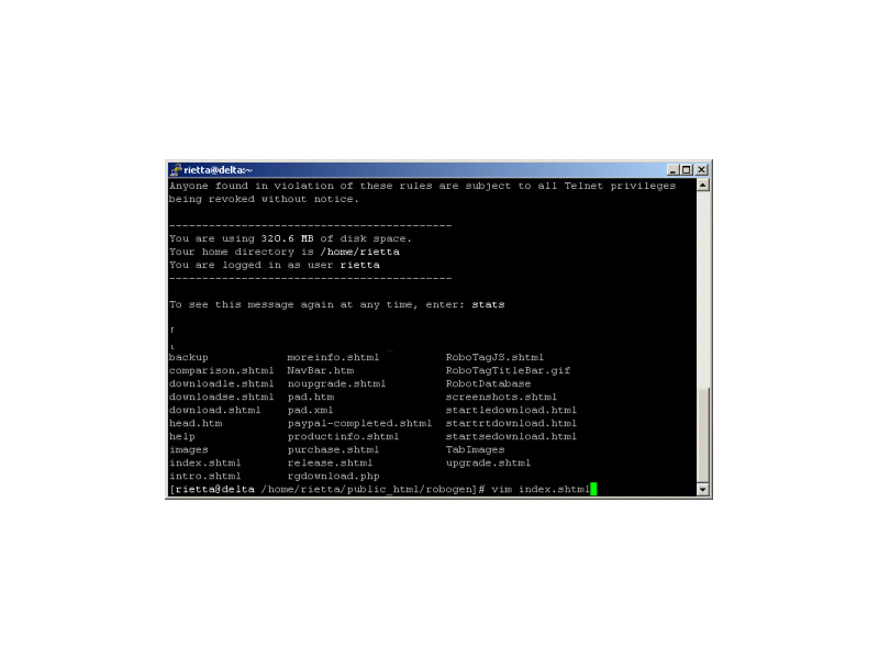 Da qui in poi, PuTTY vi consente di gestire al meglio le vostre connessioni tramite i comandi del tipo di connessione che avete selezionato. E' necessario avere un buon background su questi protocolli visto che non sono previste guide utente o GUI di sorta.