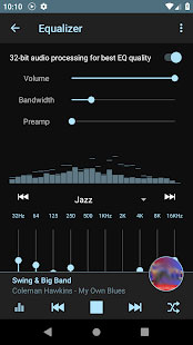 Radio Jazz & Blues Musica propone anche un comodo widget mediante il quale si riescono a controllare facilmente le principali opzioni rese disponibili. L'equalizzatore integrato a dieci bande permette di migliorare la qualità audio in funzione del tipo di brano in riproduzione. Il timer di spegnimento aiuta a non lasciare attivo lo streaming quando ci si è addormentati.