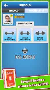 Scopa originale Dal Negro consente di giocare da soli secondo tre livelli di difficoltà. Prevista anche la modalità online per sfidare veri giocatori. Il tavolo è personalizzabile mediante uno dei numerosi sfondi disponibili e si può giocare sia in modalità orizzontale che verticale. L'app non richiede necessariamente la registrazione di un profilo. Download ed installazione sono gratuiti, ma per rimuovere la pubblicità sono previsti acquisti in-app.
