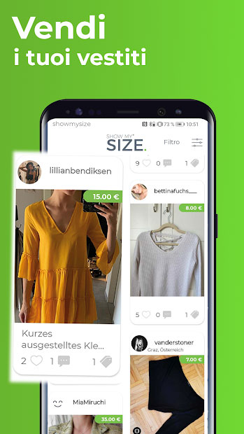 Show my Size - Vendi e compra è una semplice app realizzata per facilitare la compravendita di indumenti nuovi e di seconda mano. Si può scaricare gratuitamente in smartphone e tablet Android e iOS, ma per usufruire di tutte le sue funzionalità sono previsti acquisti integrati. Gli sviluppatori hanno pensato di mettere in piedi un sistema in grado di ridurre gli sprechi e risultare al contempo sostenibile, basandosi su una comunità di persone interessate a proporre vestiti nuovi e usati che non si utilizzano più.
