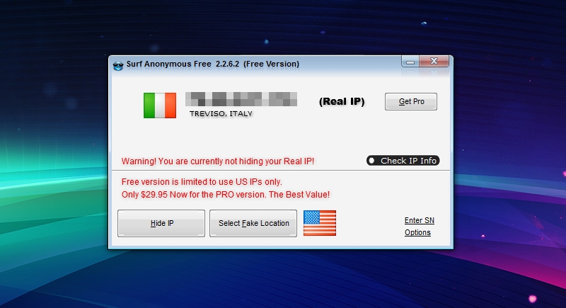 In definitiva, il software non fa altro che interporre tra l'utente e il server contattato un altro computer, in modo che il sito o servizio di destinazione legga un IP diverso da quello che in realtà corrisponde all'utente. Il download e l'utilizzo di Surf Anonymous Free sono completamente gratuiti, ma in caso di necessità è possibile ricorrere all'acquisto della versione Pro, disponibile sulle pagine del sito ufficiale al prezzo di 29,95 dollari per un anno (o 49,95 dollari per sempre), con opzioni di configurazione aggiuntive e supporto tecnico illimitato da parte degli sviluppatori.