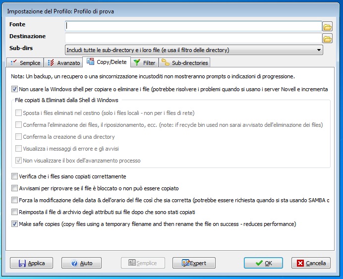 SyncBack, infatti, benché sia un software distribuito in maniera gratuita, quanto meno nella sua versione base, è in grado di eseguire backup su archivi esterni collegati mediante USB, CD oppure DVD sfruttando UDF, server remoti attraverso il protocollo FTP oppure ancora di salvare i risultati dei backup in archivi in formato .ZIP da trasferire poi manualmente altrove. Il tutto, come detto, con l'opportunità di suggerire al software quando ed in che modo eseguire i backup, lasciando di fatto il compito a SyncBack di gestire ogni singola operazione in maniera del tutto automatica.