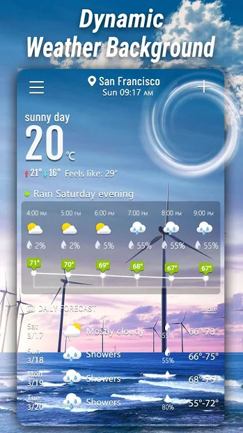 Tempo Metereologico rende disponibile un insieme di widget mediante i quali è possibile personalizzare l'esperienza d'uso. Consente inoltre di utilizzare la mappa radar meteorologica più recente, visualizzare le animazioni del radar e tenere traccia delle condizioni del tempo locali. Previste anche allerte meteo in caso di condizioni particolari. Il database fa accedere alle condizioni meteo delle principali località italiane e del mondo.