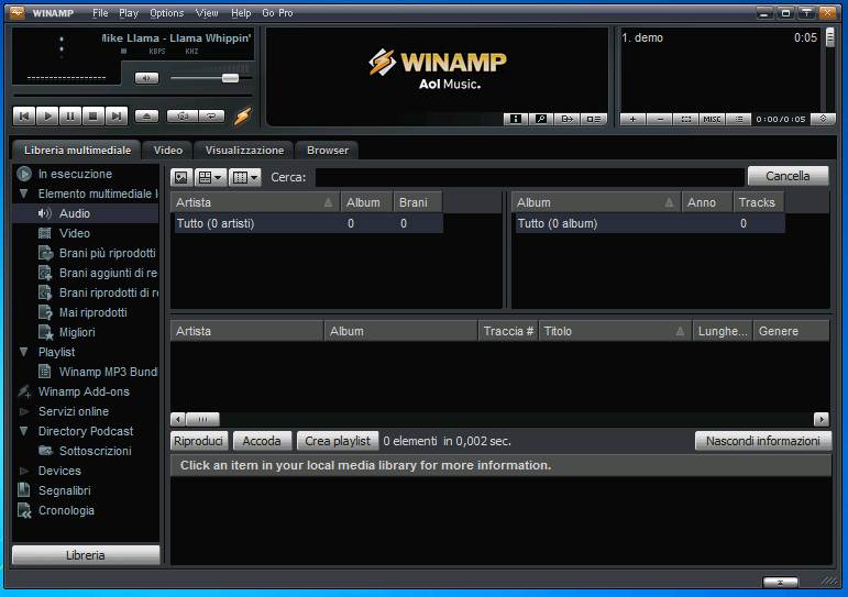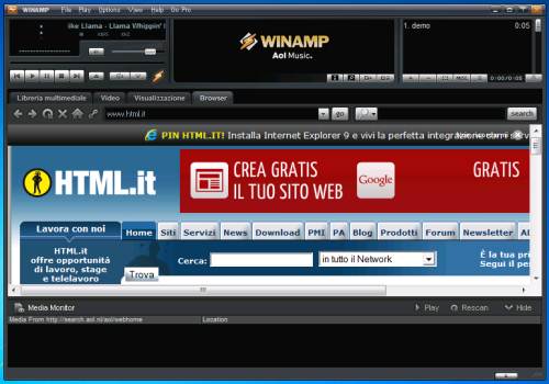 Winamp è un player multimediale gratuito e completo di funzioni per ascoltare musica, guardare video, organizzare e sincronizzare la propria libreria multimediale con il proprio dispositivo mobile. Salito alla ribalta per essere stato uno dei primi programmi per leggere MP3 e masterizzarli in Wave ed evolutosi nel tempo nella codificazione di video e nello streaming audio, rimane tutt'oggi uno dei migliori programmi per ascoltare musica sul pc, oltre a consentire anche la fruizione di podcast ecanali radio o televisivi via Internet. È gratuito e altamente personalizzabile con numerose Skin, Plugin, Servizi online e Visualizzazioni, il tutto reso disponibile da una community molto attiva.