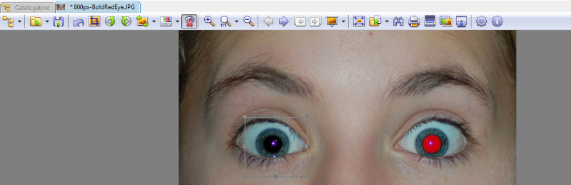 Infine, una tra le funzioni più interessanti di XnView è di sicuro il tasto "Rimuovi occhi rosssi". Per utilizzarla, basta selezionare l'area rossa all'interno dell'occhio del soggetto (aiutandoci con lo strumento di zoom) e applicare il filtro di rimozione dell'occhio rosso. Se il risultato non dovesse essere perfetto basterà semplicemente ridurre la zona di interesse per avere un risultato migliore.